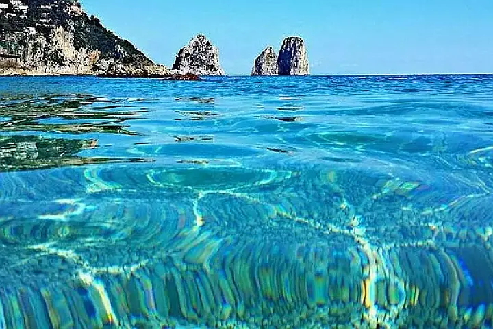 By catamaran we will discover a majestic coastline dotted with caves and very high cliffs. We will anchor under the iconic 100m high rock peaks, the Faraglioni di Terra, di Mezzo and di Fuori, a postcard scenario that must be seen once in a lifetime.