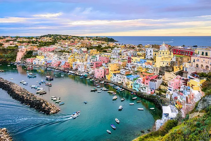 Procida on the other hand has managed to maintain a certain detachment from the classic tourist dynamics, allowing us to savor an authentic atmosphere that has captivated poets and artists from all over Europe. Corricella is an ancient marina with colorful houses, narrow paved streets with no trace of cars, traditional fishermen's fishing boats and nets hung out to dry in the sun, where time seems to have stopped a century ago.