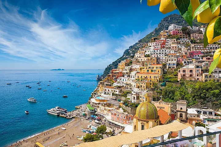 Splendid village perched on the side of a mountain, a holiday resort since the time of the Roman Empire, as attested by the discovery of an imperial-era villa under the church of Santa Maria Assunta. The very long stairways that from the top of the town reach down to the beach and the marina are very scenic. Positano beachwear takes its name from this characteristic village, an icon of Italian summer sweet life and beyond since the 1960s.