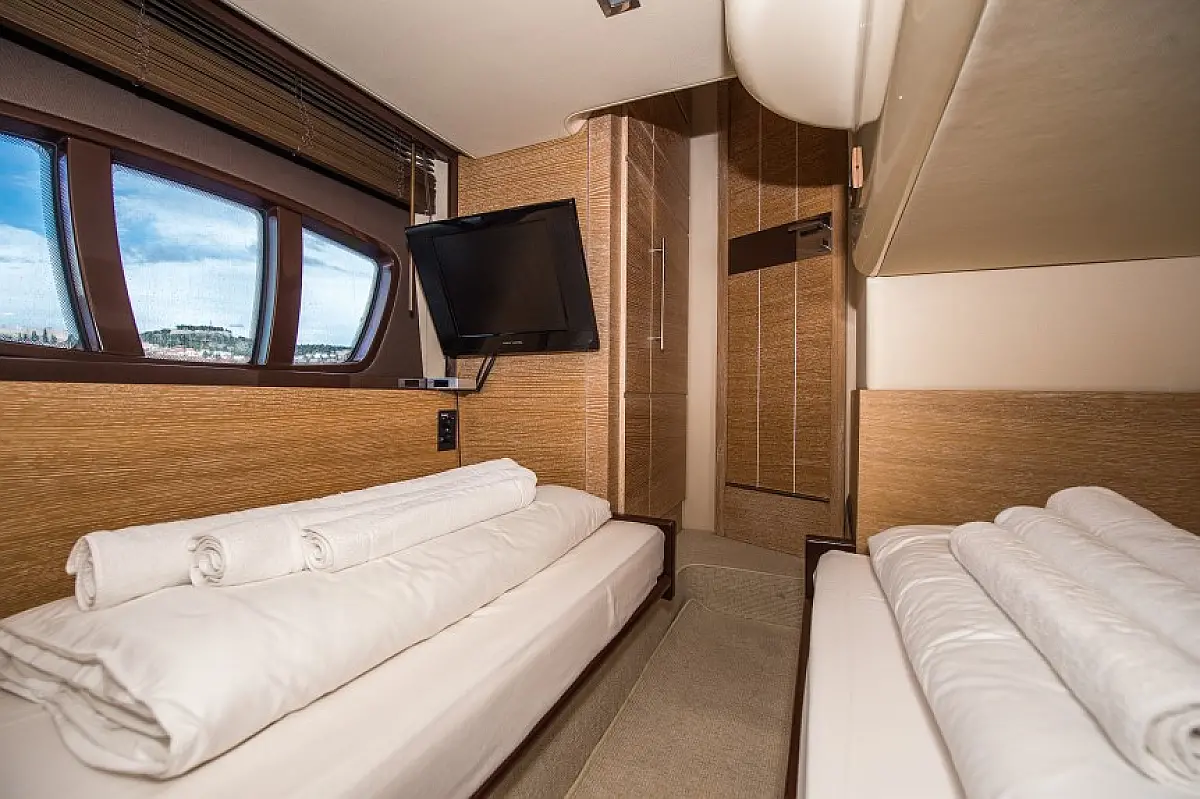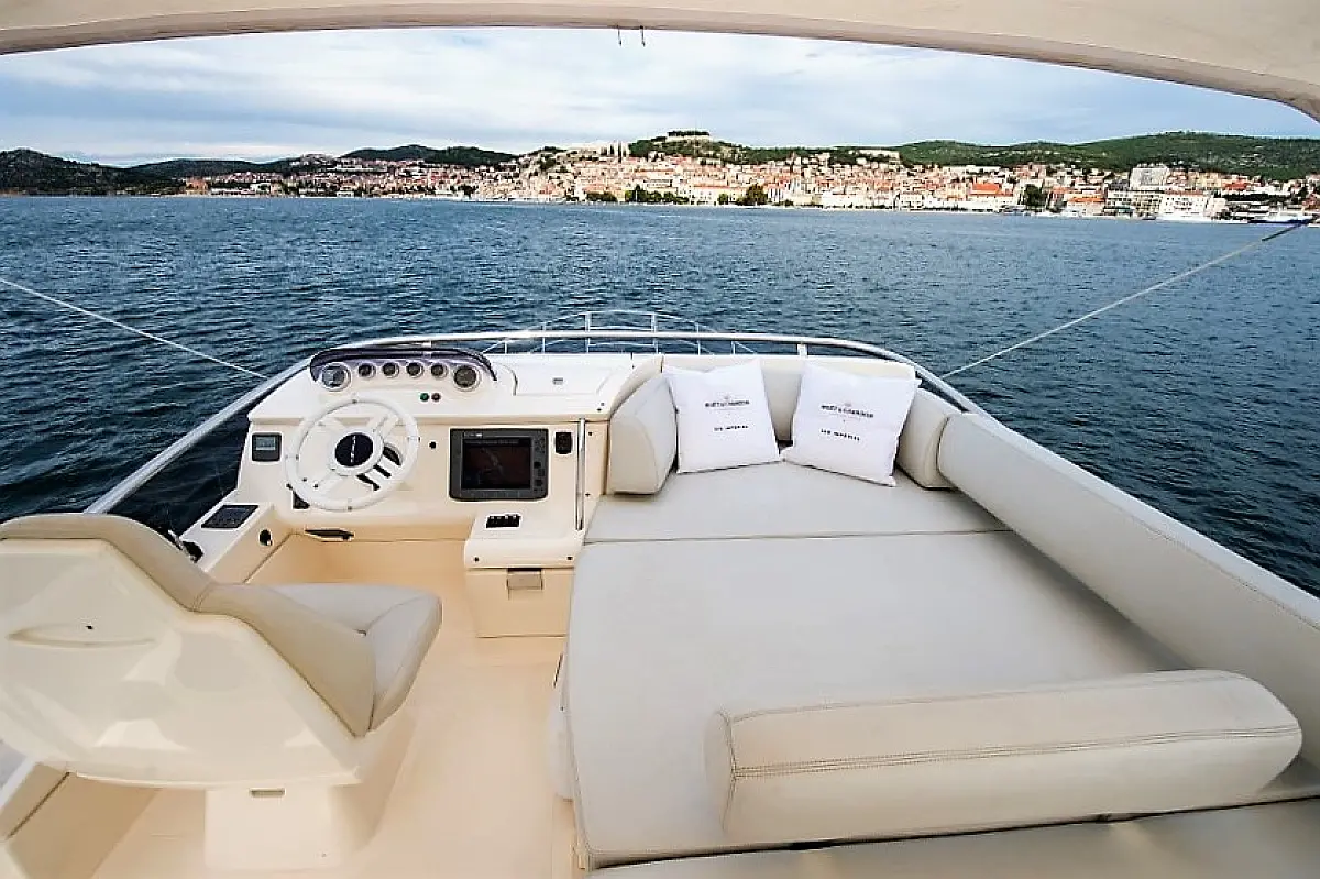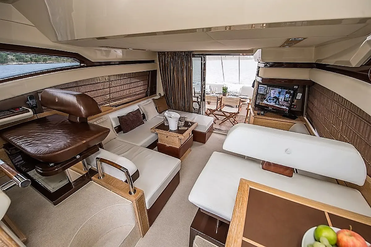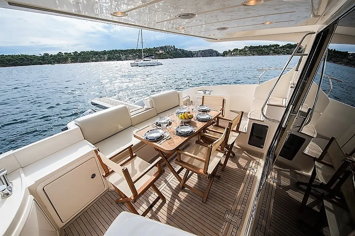 Dinghy, Generator, Ice maker, Hydraulic gangway, Refrigerator, Electric toilet, Air condition, Barbecue grill in cockpit, Teak Cockpit, Flybridge