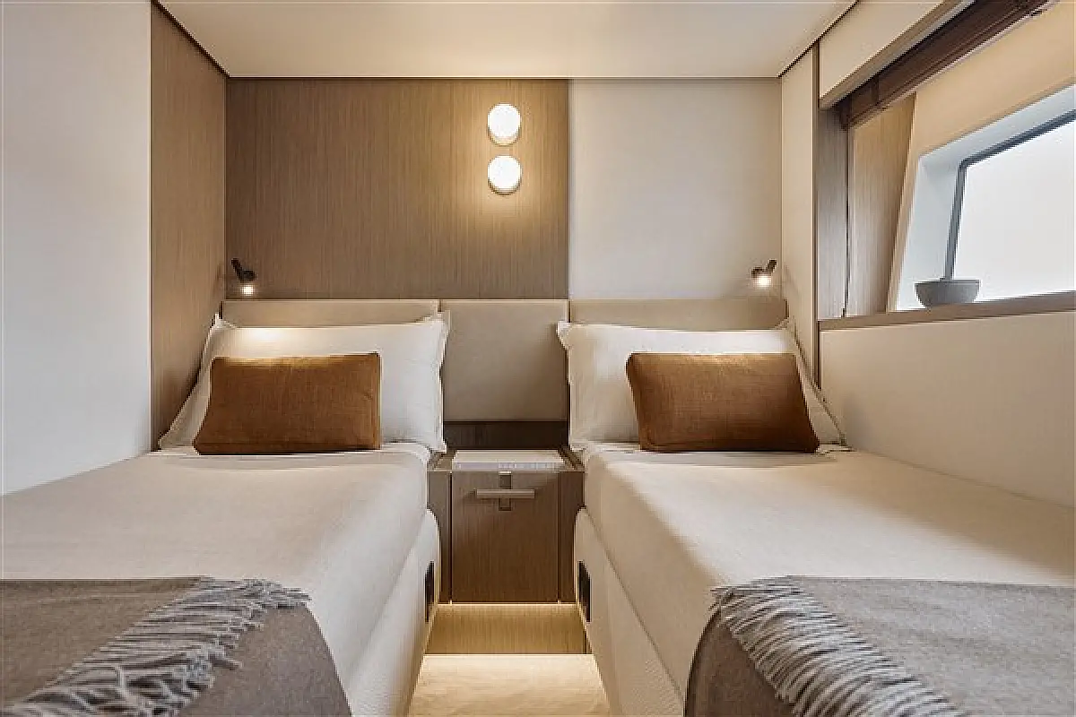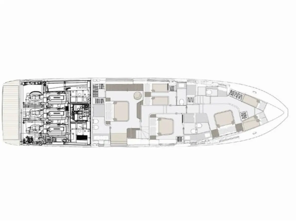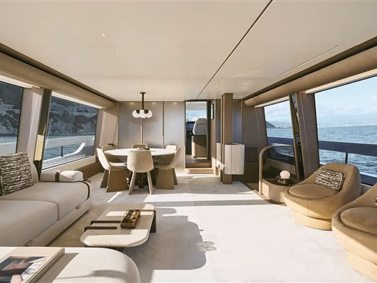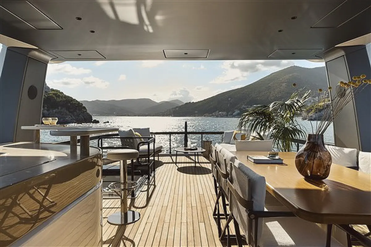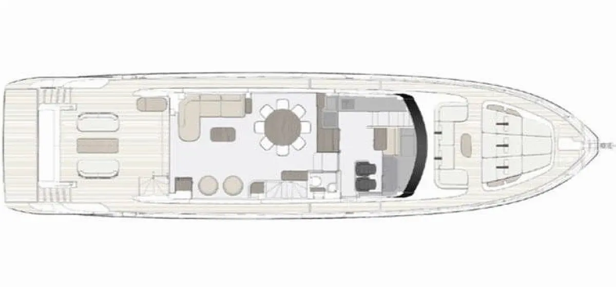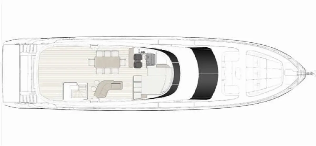 Teak deck, Hydraulic gangway, Swimming platform, Air condition, Barbecue grill in cockpit, Flybridge