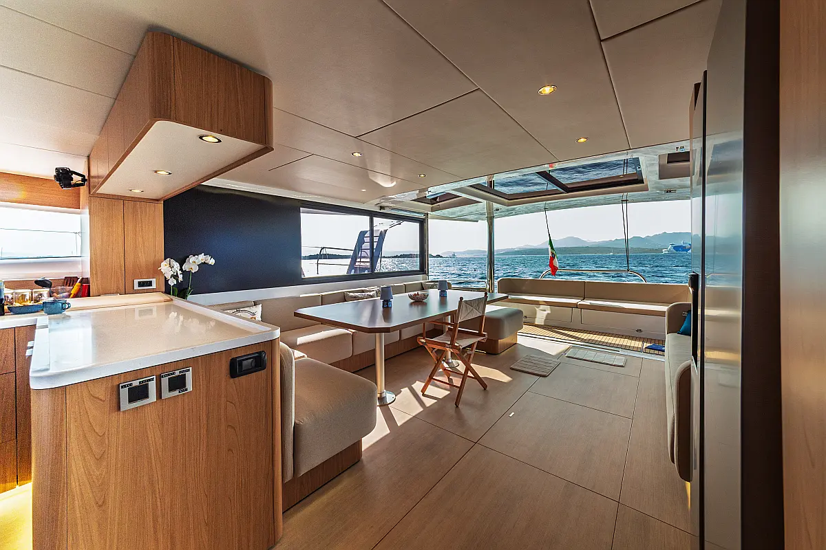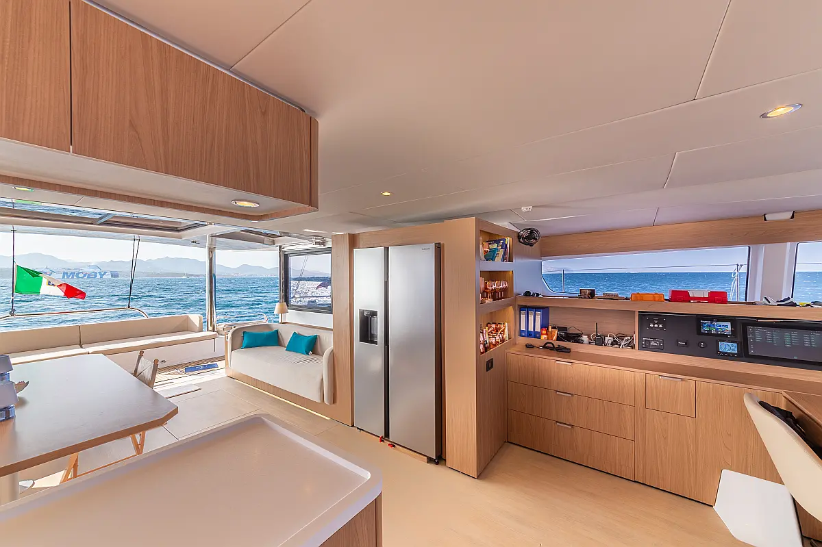 Dinghy, Air condition, Bimini, Refrigerator, Electric winches, Teak deck, Flybridge, Electric toilet, Inverter, Generator, Water maker