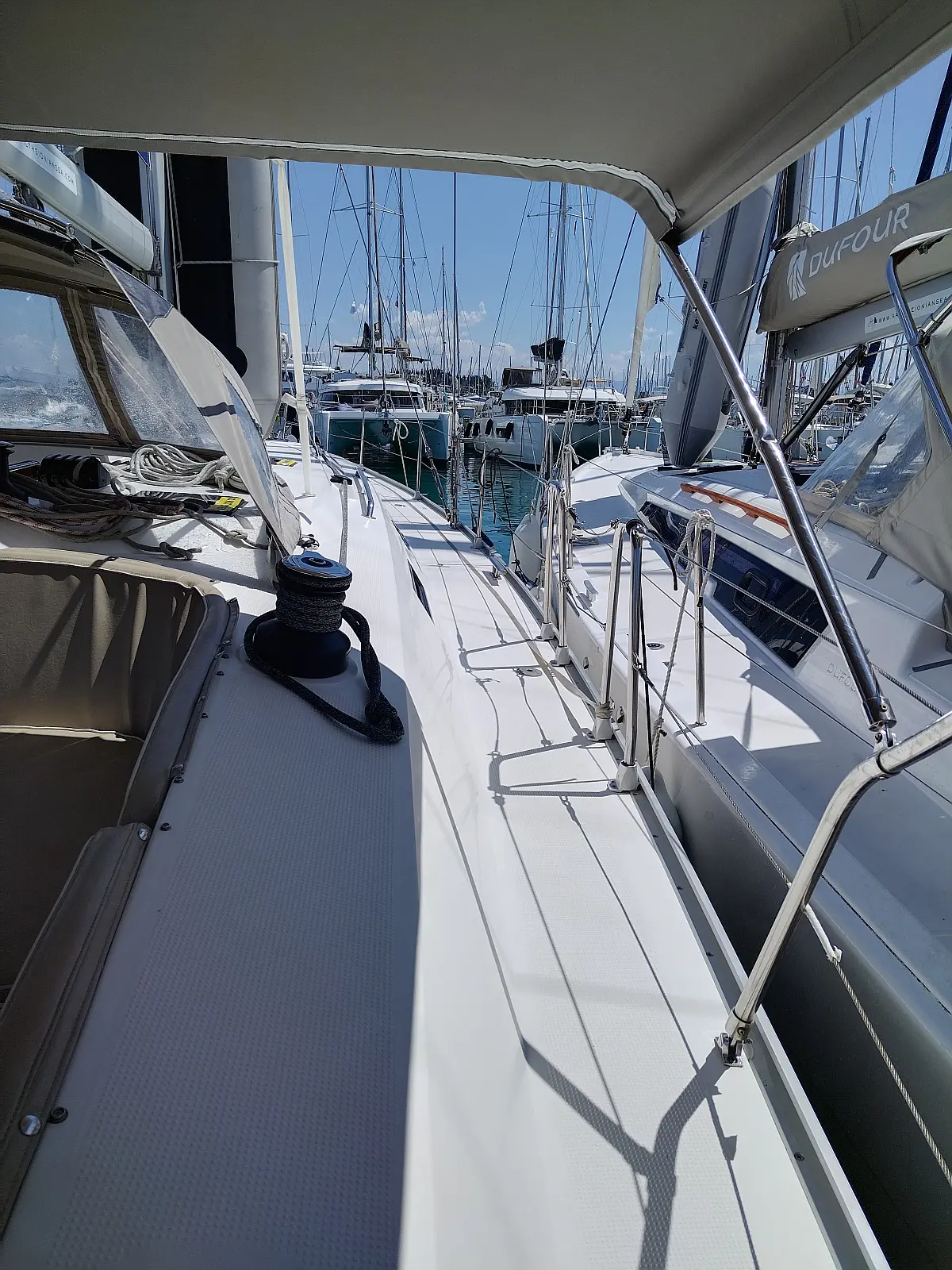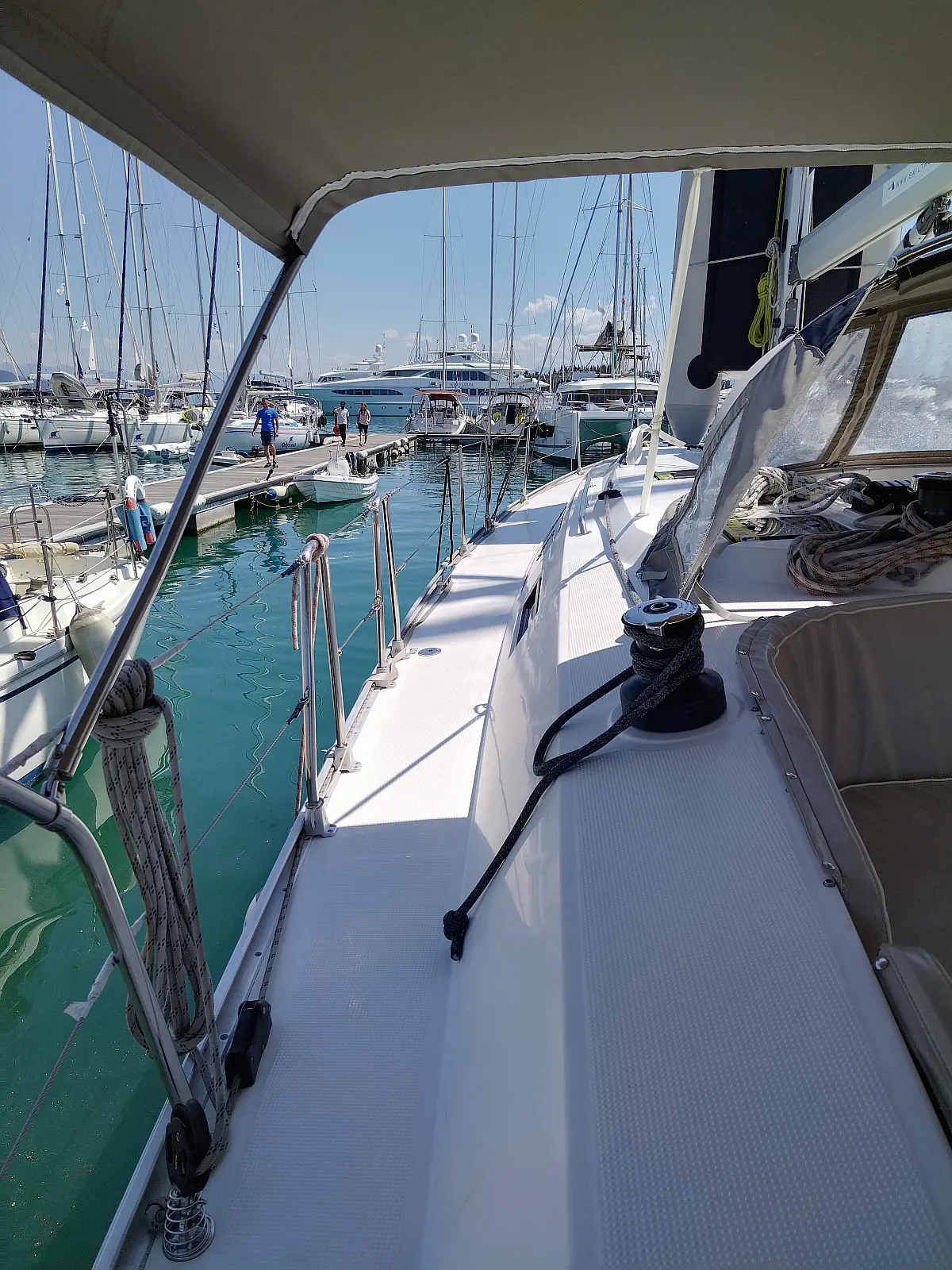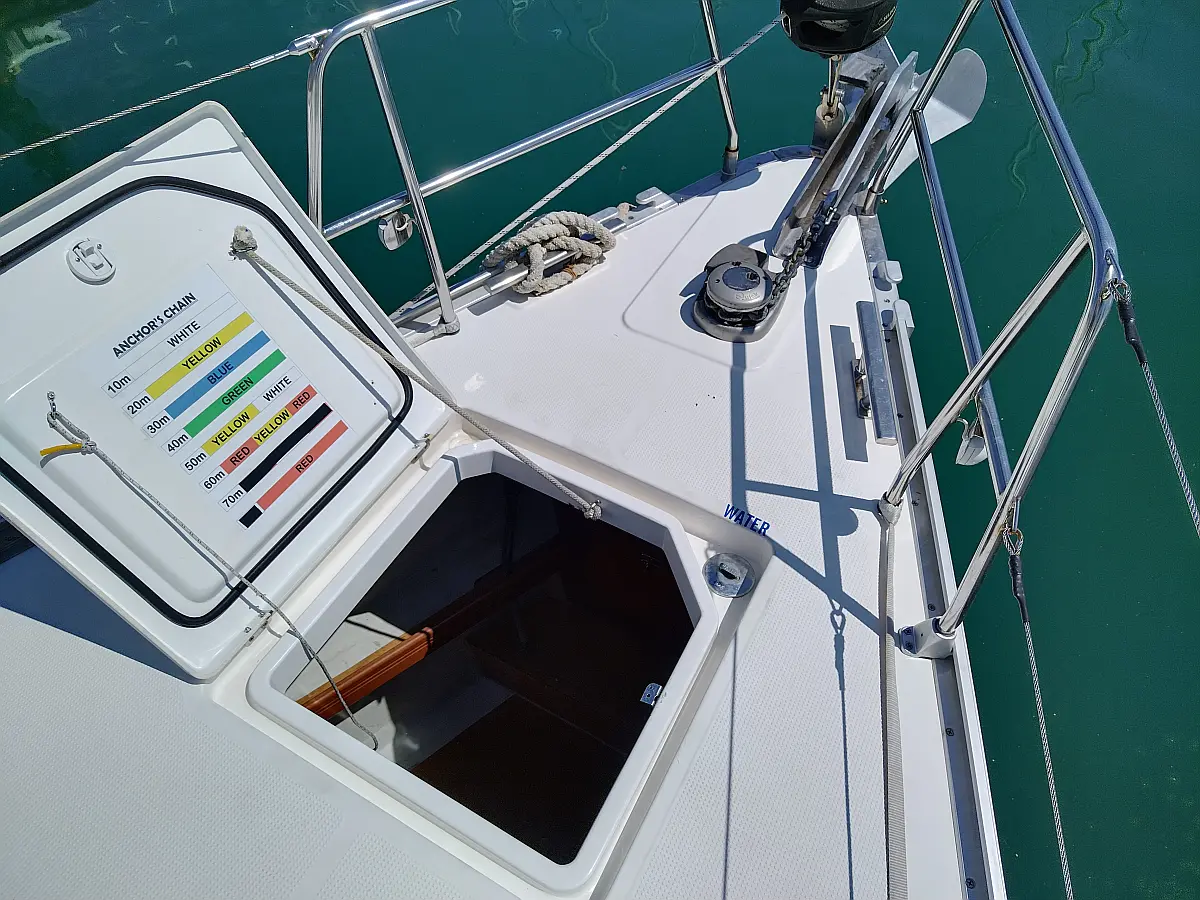 Dinghy, Electric winches, Outboard engine, Bimini, Sprayhood, Solar Panels