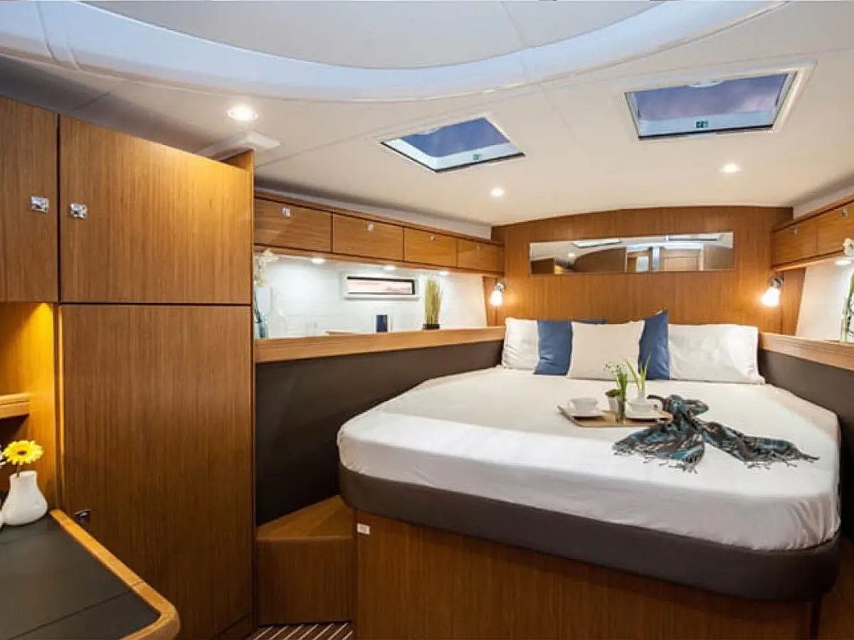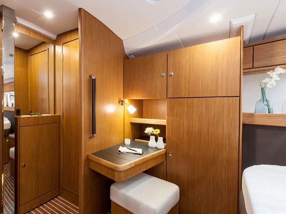 Electric toilet, Cockpit cushions, Teak Cockpit, Electric winches, Dinghy, Refrigerator, Air condition, Generator, Solar Panels, Bimini, Sprayhood
