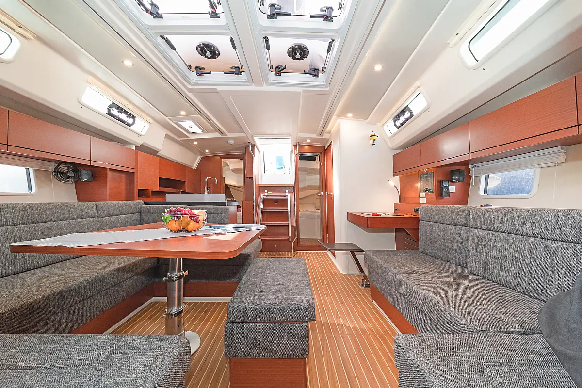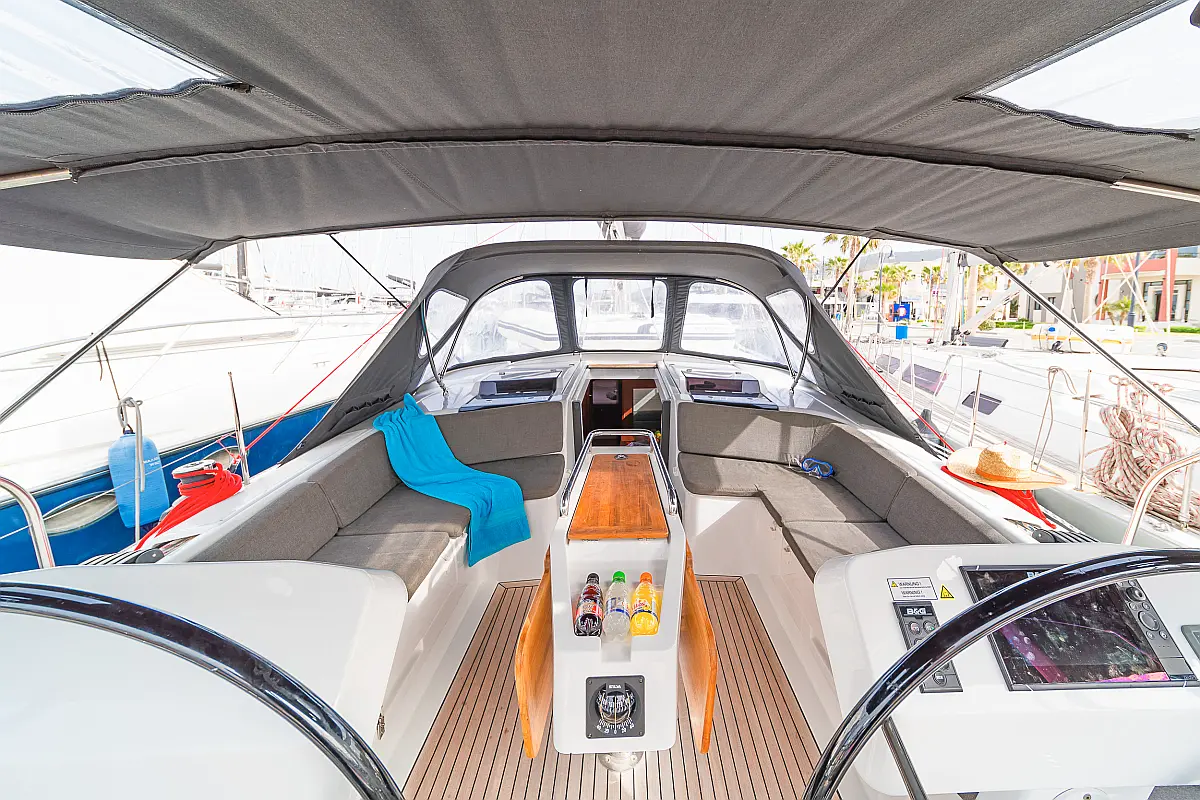Sprayhood, Bimini, Dinghy, Electric toilet, Refrigerator, Cockpit cushions, Solar Panels, Cockpit speakers