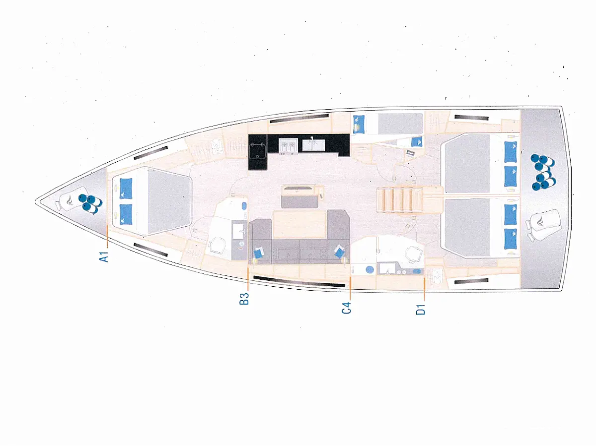 Solar Panels, Bimini, Refrigerator, Coffee maker, Dinghy, Water maker