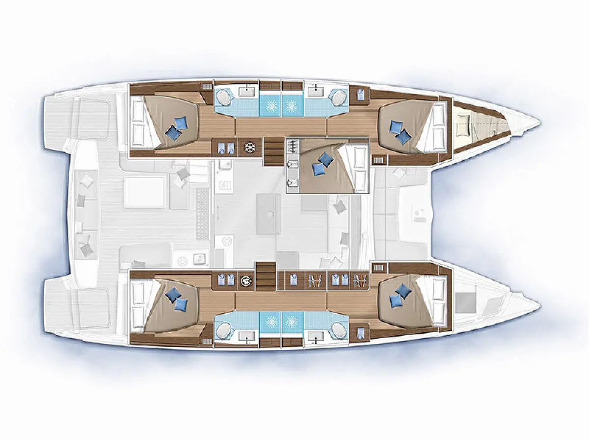 Dishwasher, Refrigerator, Cockpit speakers, Wi-Fi & Internet, Dinghy, Air condition, Generator, Water maker