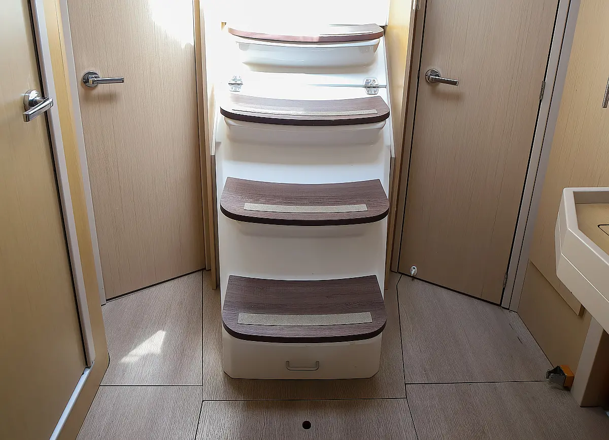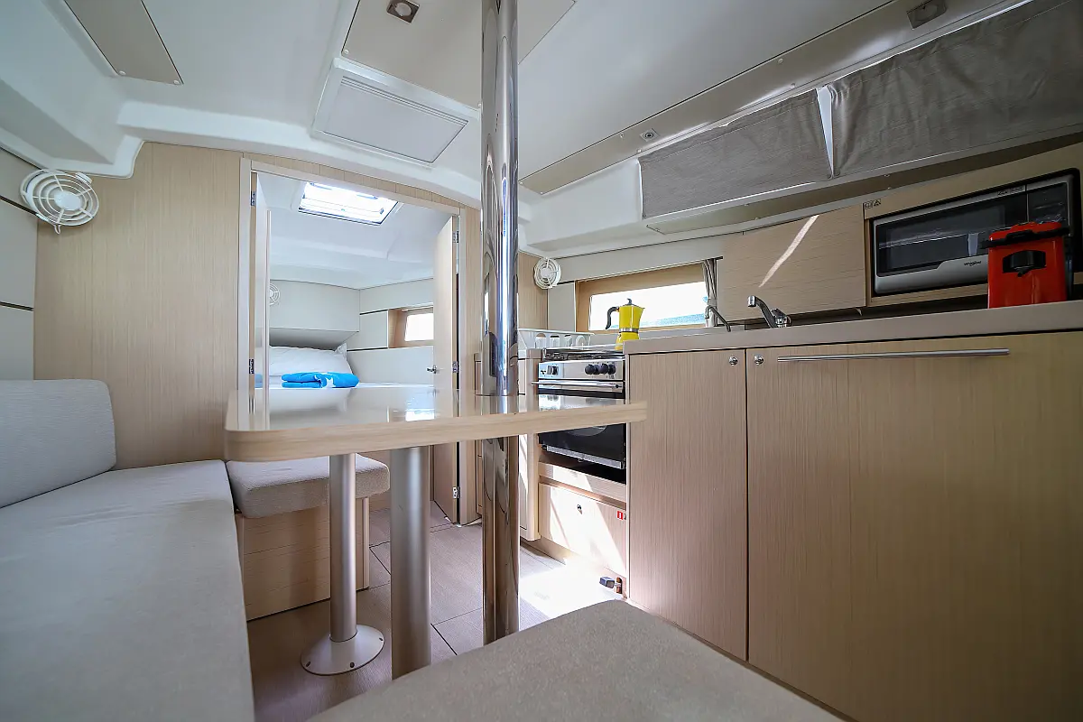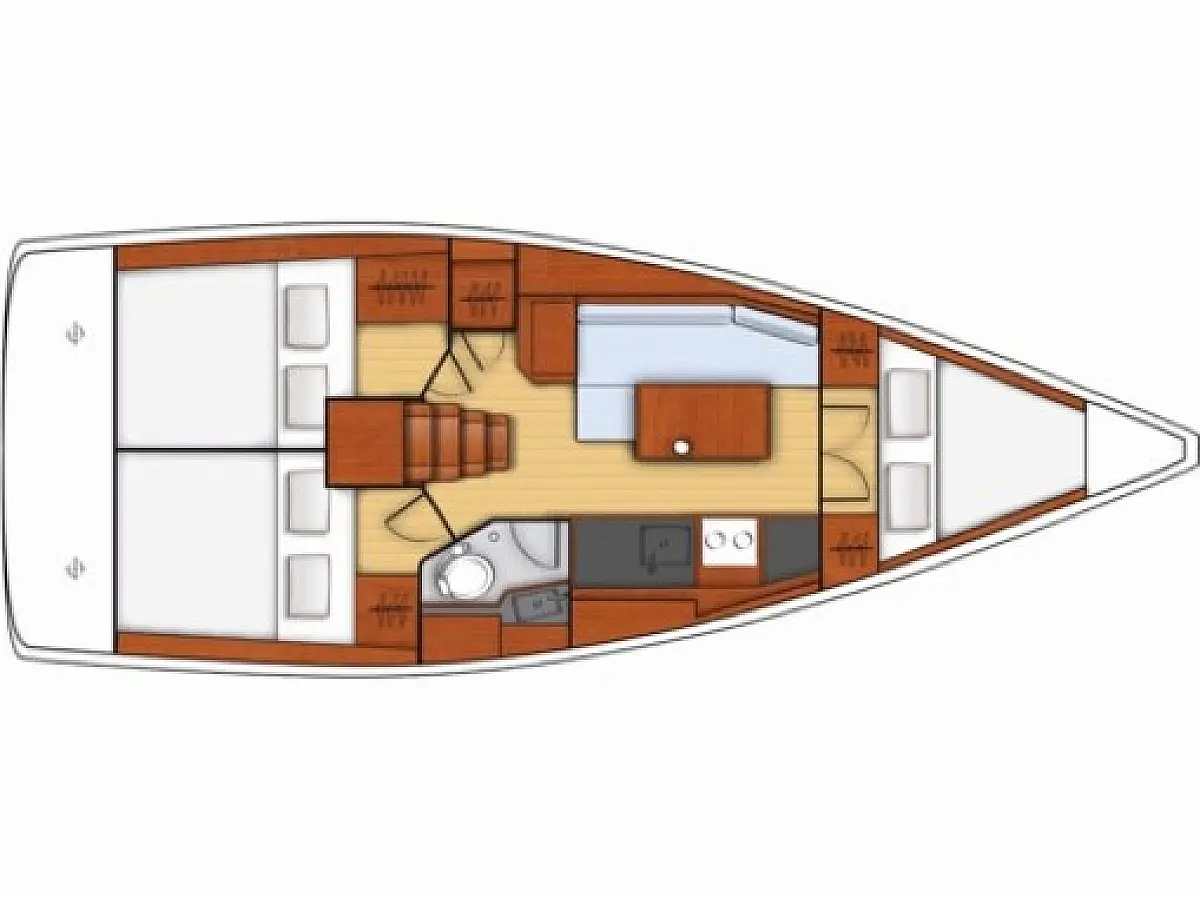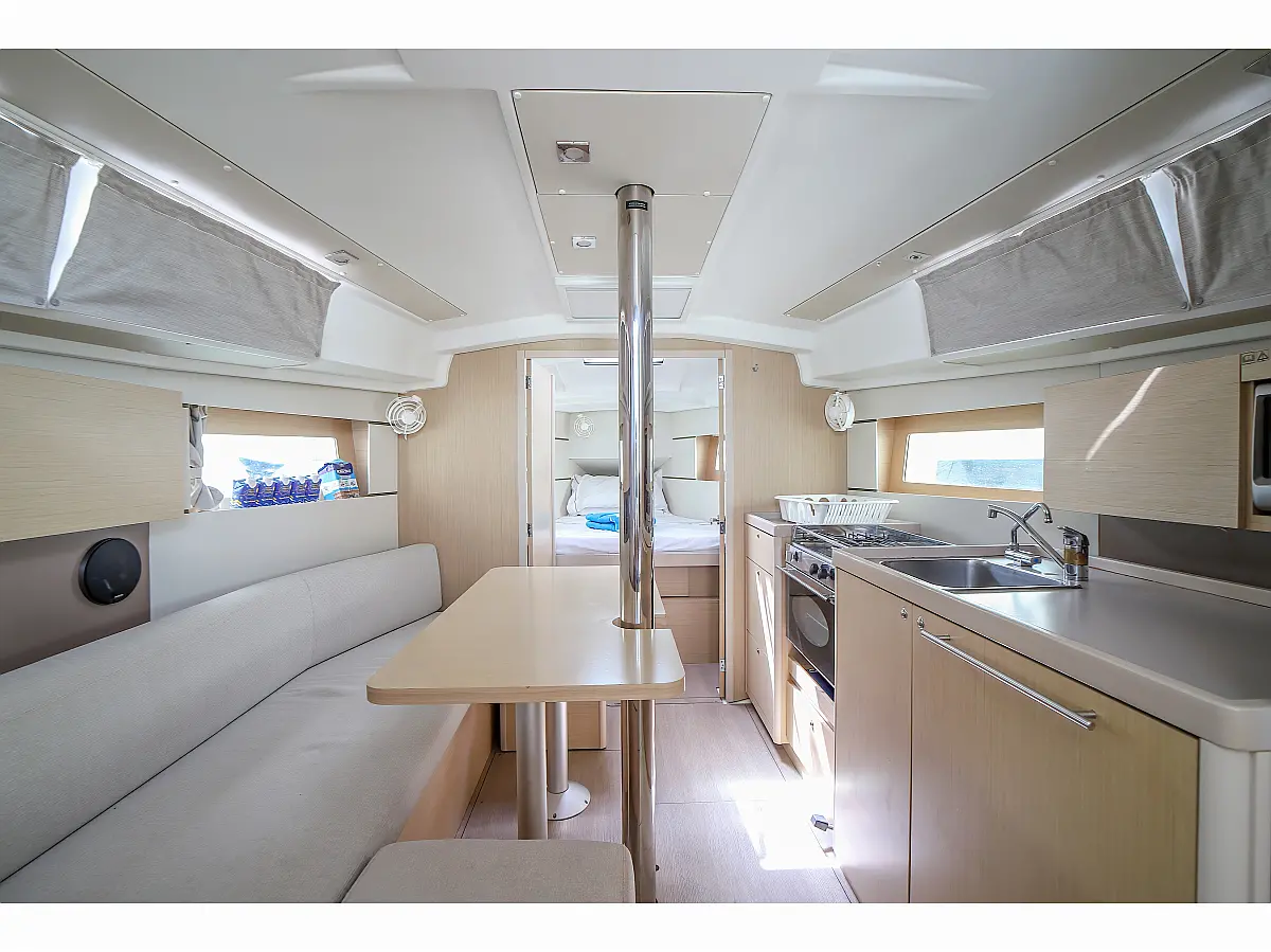 Dinghy, Outboard engine, Teak Cockpit, Cockpit cushions, Electric winches, Inverter, Coffee maker, Electric toilet, Refrigerator