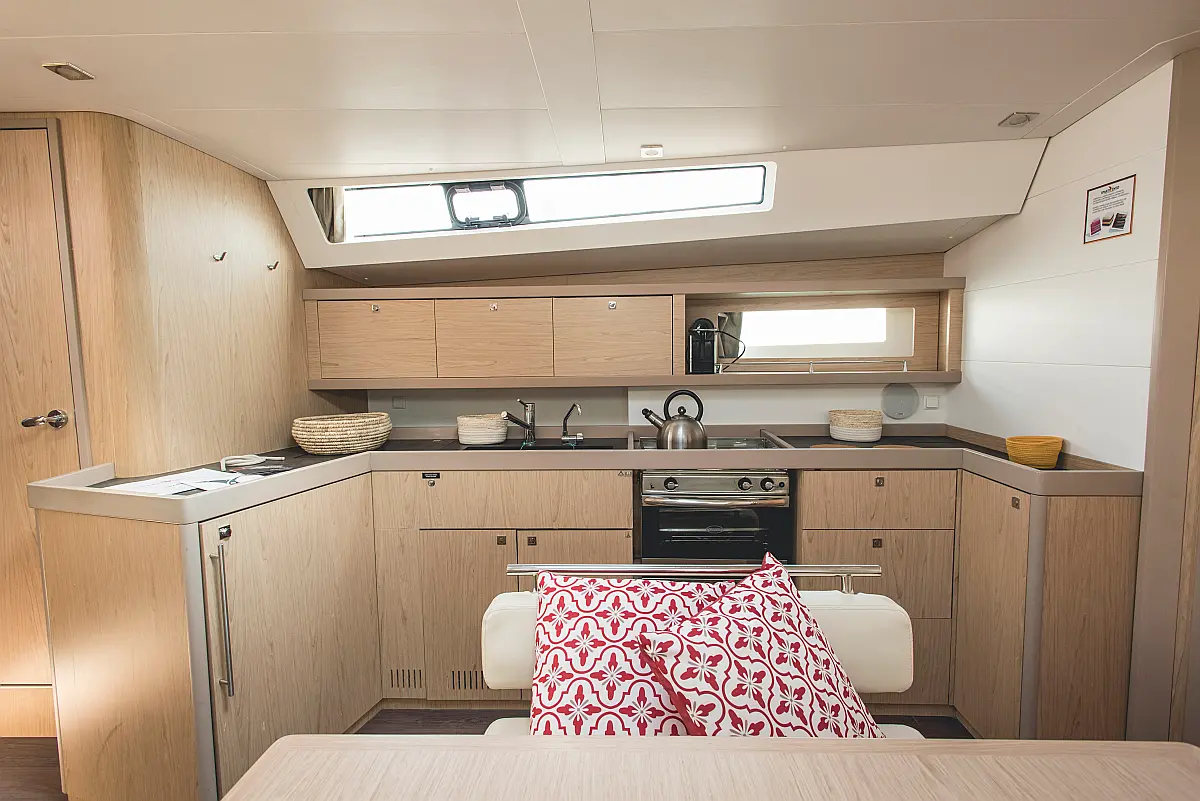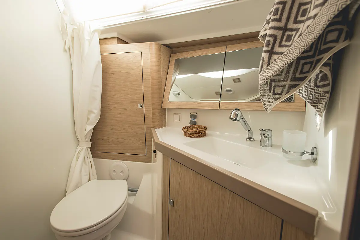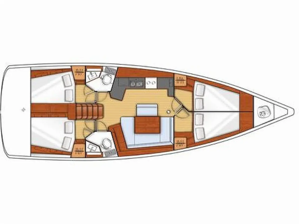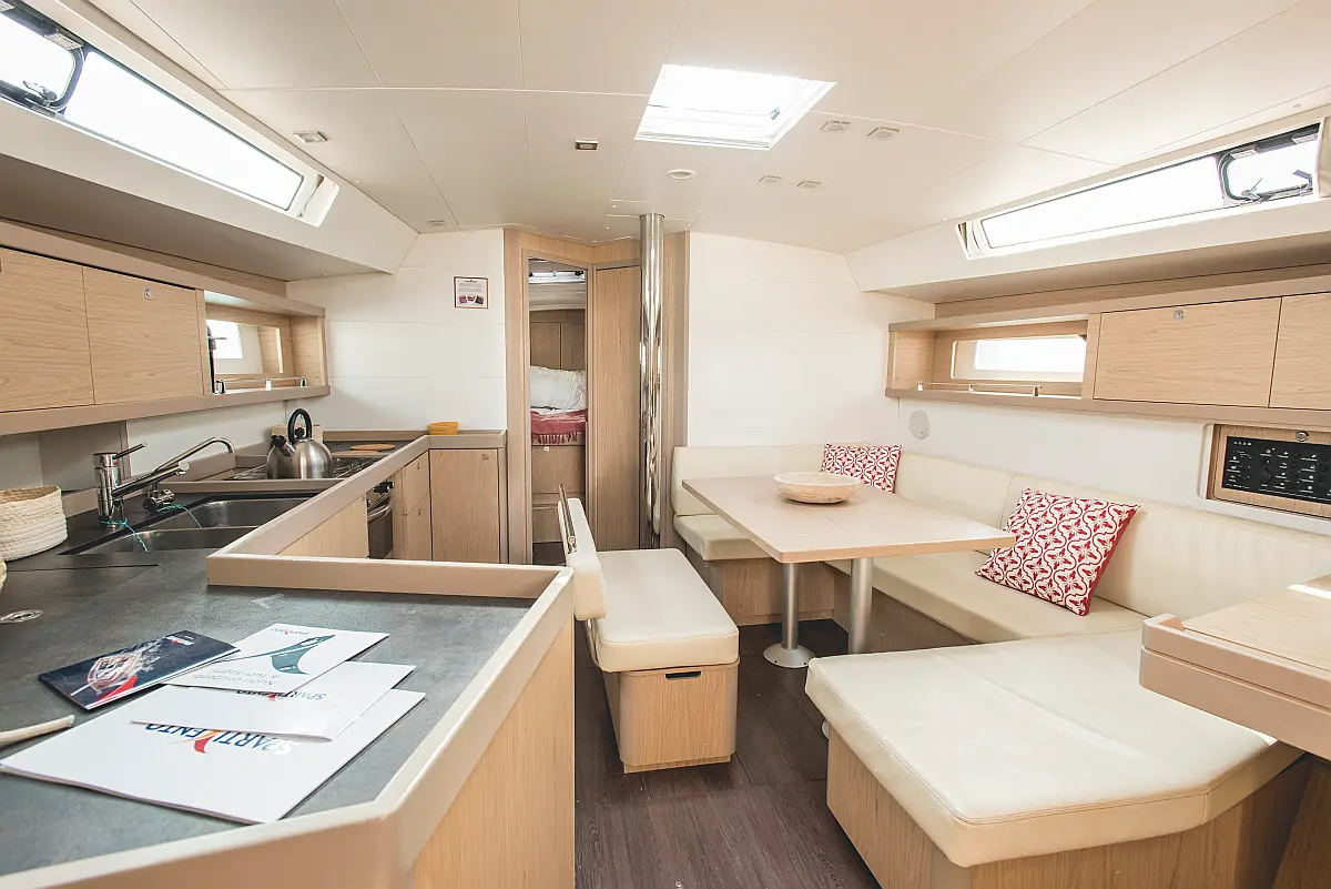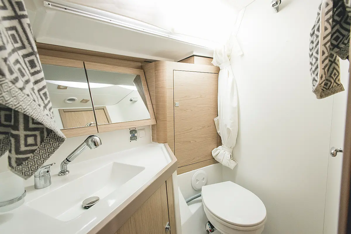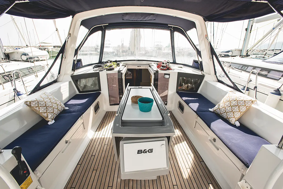 Electric winches, Inverter, Cockpit cushions, Teak deck, Electric toilet, Refrigerator