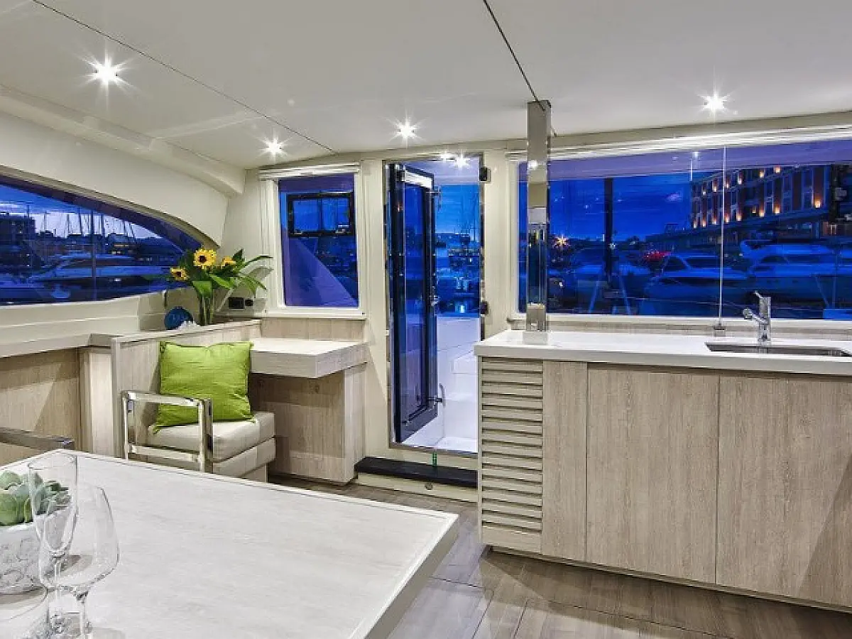 Refrigerator, Holding tank, Bimini, Air condition, Solar Panels, Generator