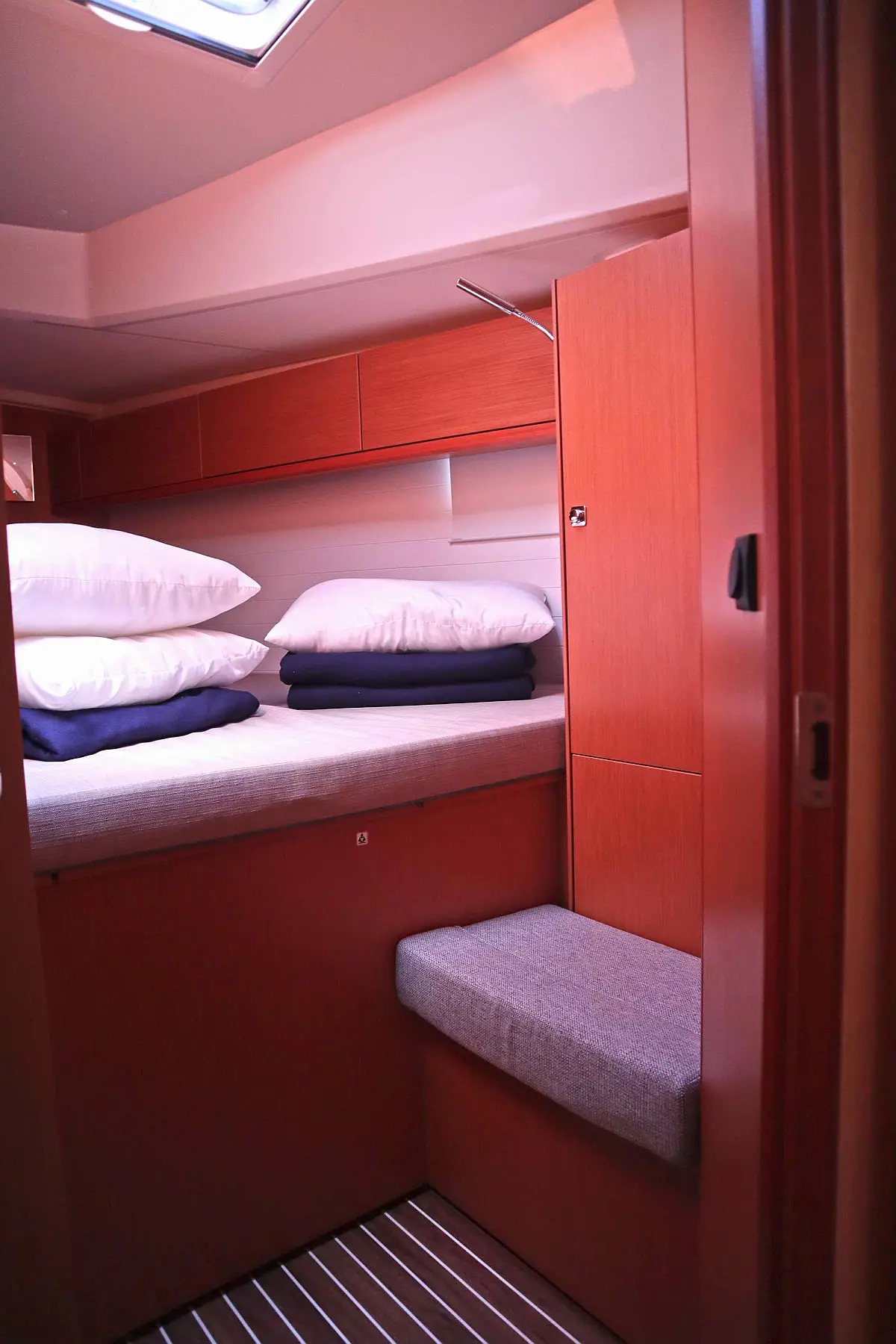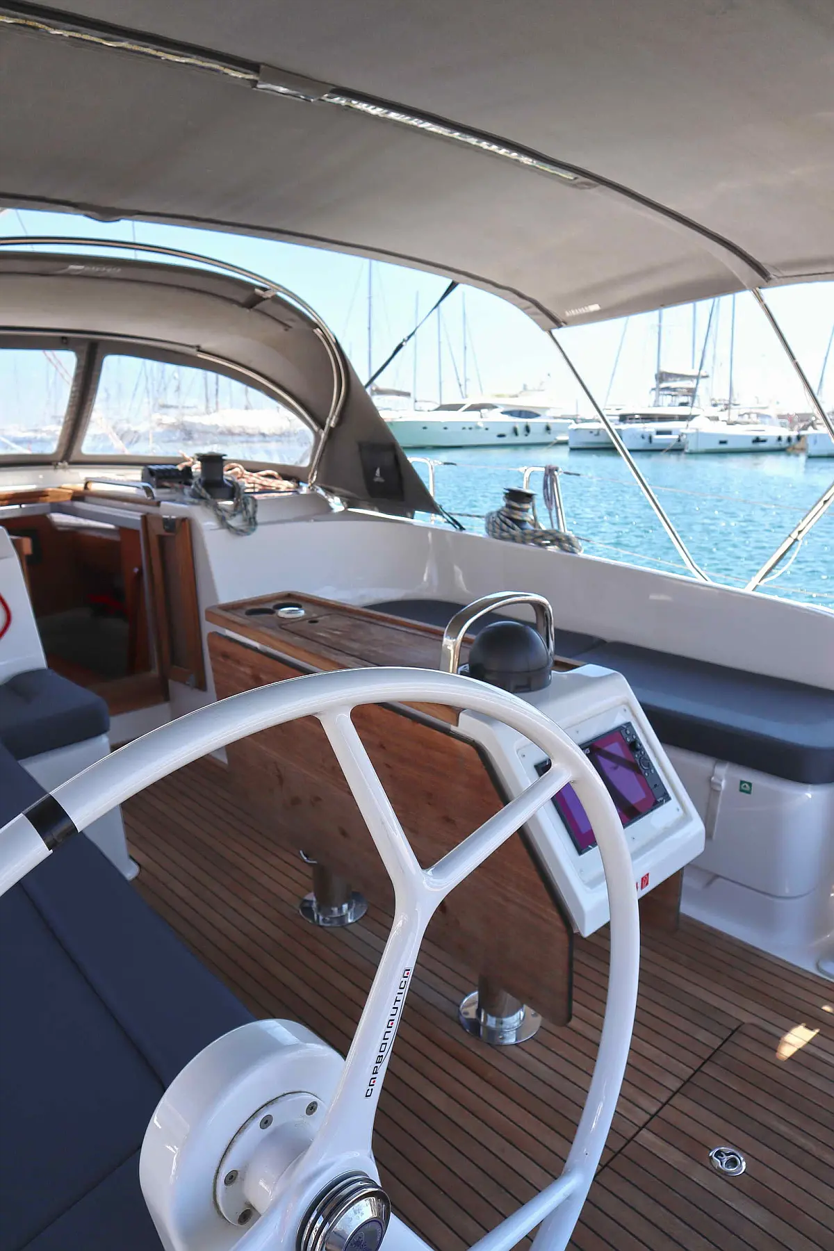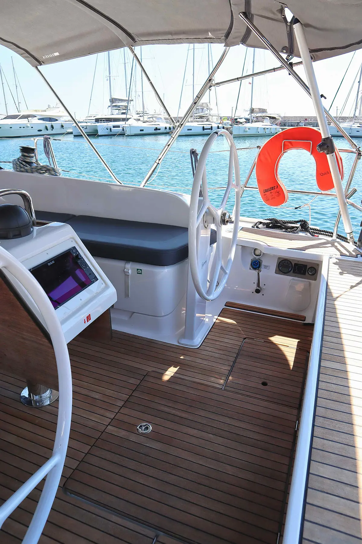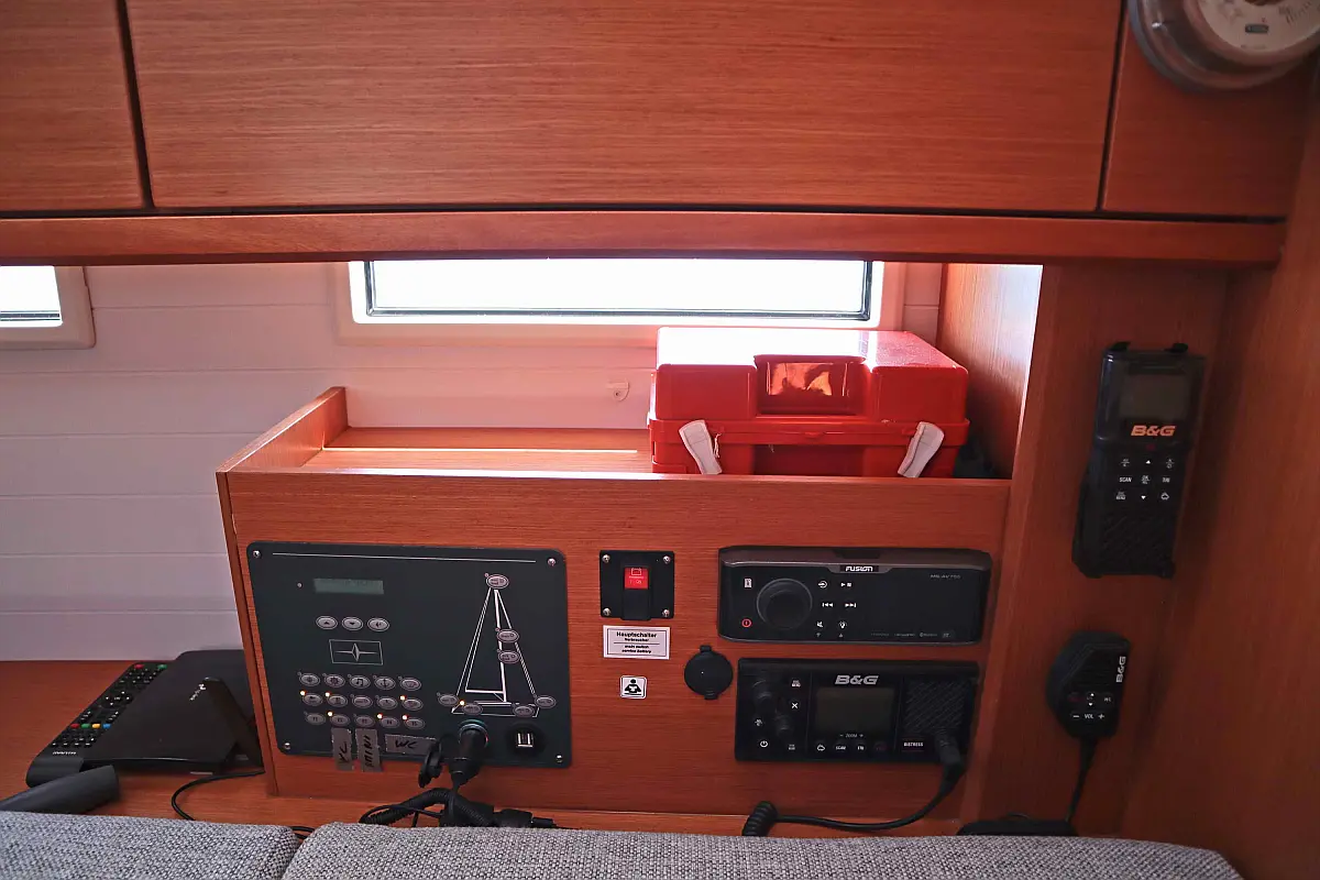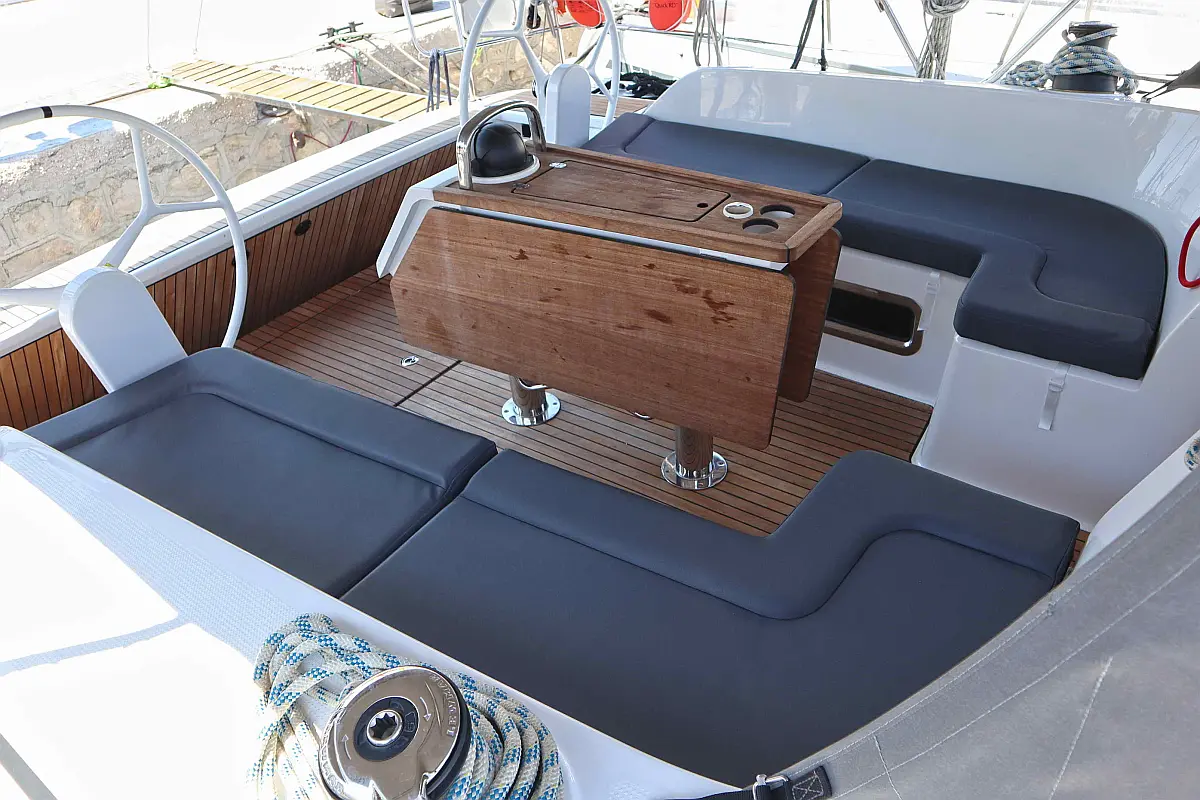 Sprayhood, Bimini, Cockpit speakers, Holding tank, Refrigerator, Swimming platform, Cockpit cushions, Electric toilet